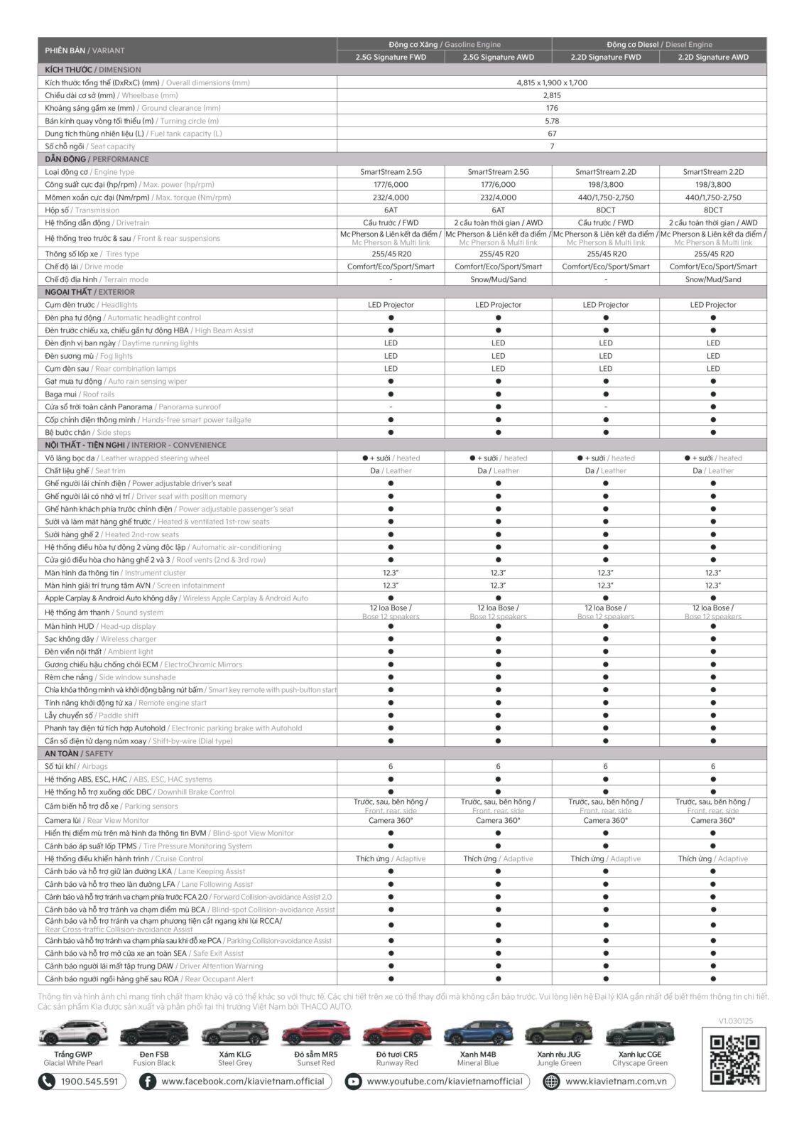 New Sorento 2.2D Signature AWD ( Dầu - 2 Cầu ): | 1,469 tỷ đ |