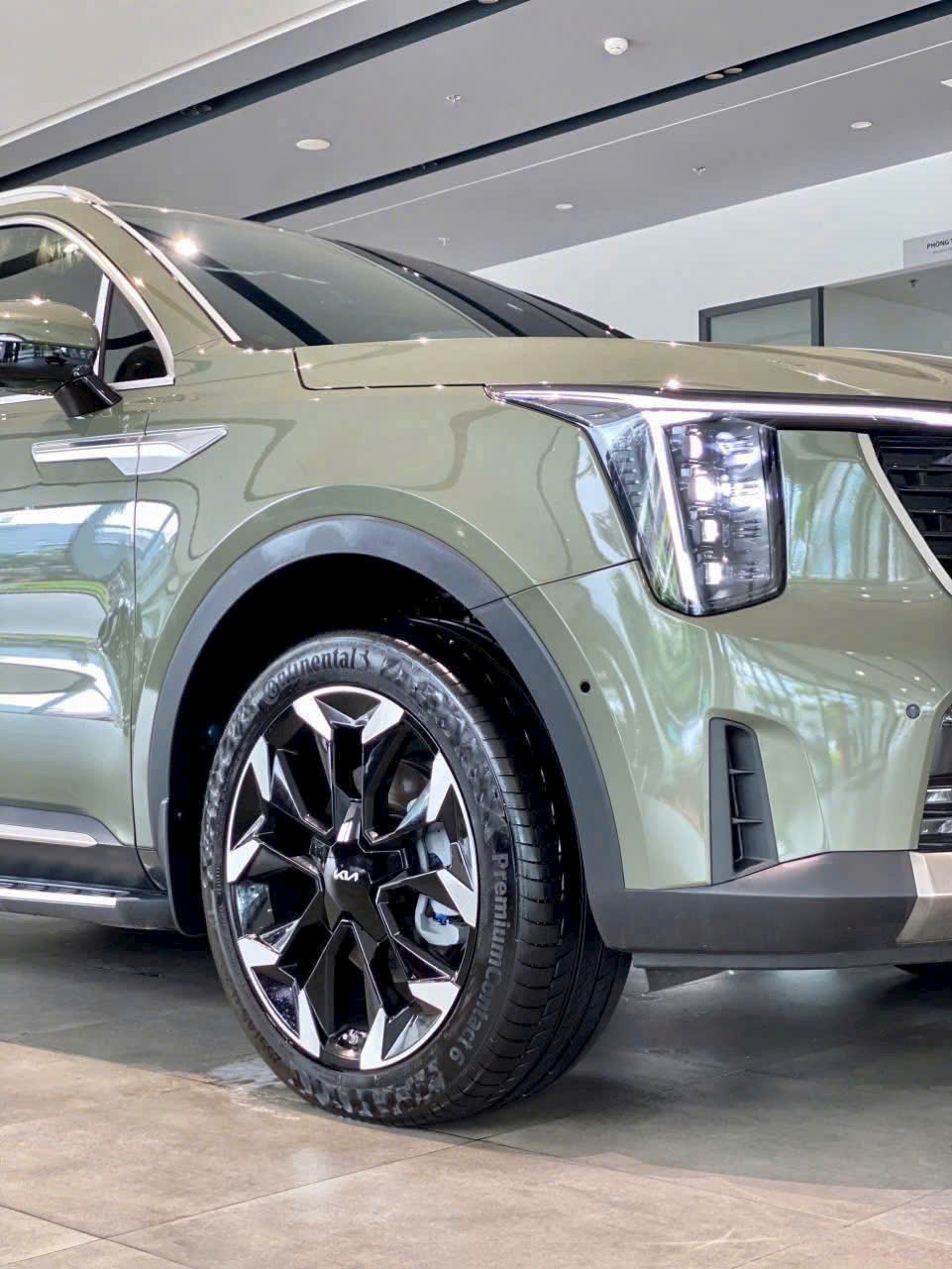 Thiết kế bên hông Kia New Sorento nổi bật với các đường gân dập nổi vững chãi và mâm xe đa chấu thể thao, nhấn mạnh dáng vẻ cá tính và hiện đại của một chiếc SUV lịch thiệp.