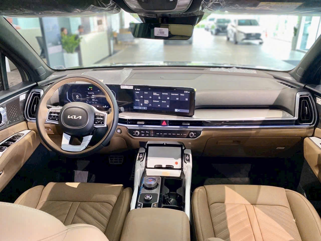 Không chỉ tăng kích thước, màn hình giải trí trên Kia Sorento 2025 cũng kết nối Apple Carplay & Android Auto không dây. Nhiều tính năng nổi bật đã trở thành tiêu chuẩn trên bản mới, như sưởi vô lăng, ghế lái nhớ vị trí, sưởi và làm mát hàng ghế trước, điều hòa tự động 2 vùng, hệ thống âm thanh 12 loa Bose, HUD, sạc không dây, rèm che nắng, cần số dạng núm xoay, cổng sạc type C ở cả 3 hàng ghế, đèn viền nội thất...
